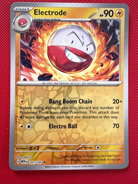 Nyåbnet Electrode Reverse Holo Pokémonkort fra Scarlet & Violet 151, 101/165. Kan afhentes i Hillerød. Se mine andre annoncer.