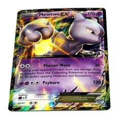Pokémonkort Mewtwo EX från XY183 serien. De är större än ett vanligt kort!