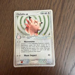 Säljer ett Pokémonkort, Clefable ex. Kortet är från 2004. Från barndomssamlingen, skick enligt bilder.