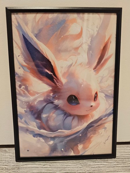 Tavla med pokemon Eevee som motiv. Storlek 21x30 - Svart ram som visas på bilden medföljer.