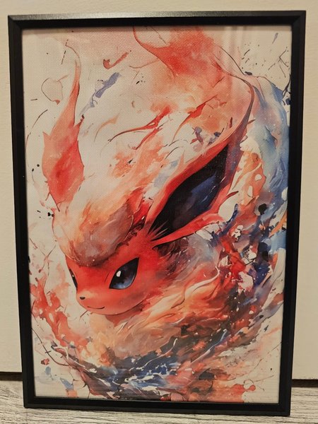 Tavla med pokemon Flareon som motiv. Storlek 21x30 - Svart ram som visas på bilden medföljer.