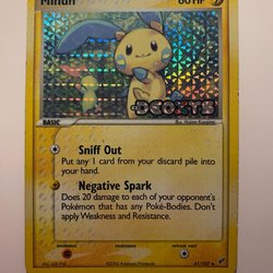 Säljer ett Pokemonkort. Kortet är Minun 67/101. Lite kantstött, se bilder för detaljer och avgör själv.