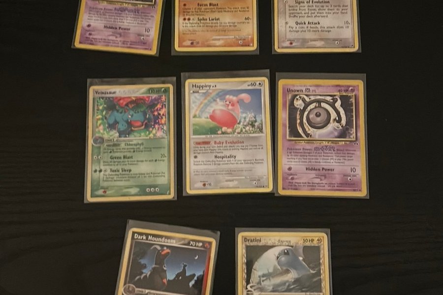 Detta paket innehåller följande Pokemonkort: Unown, Lucario, Eevee, Venusaur, Happiny, Unown, Dark Houndoom och Dratini.