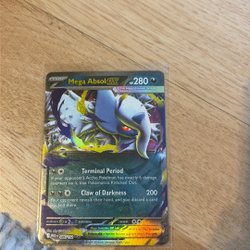Et Pokemonkort af Mega Absol EX. Kortet har angrebene 'Despiriod' og 'Ond Klø'. Se billedet for detaljer.