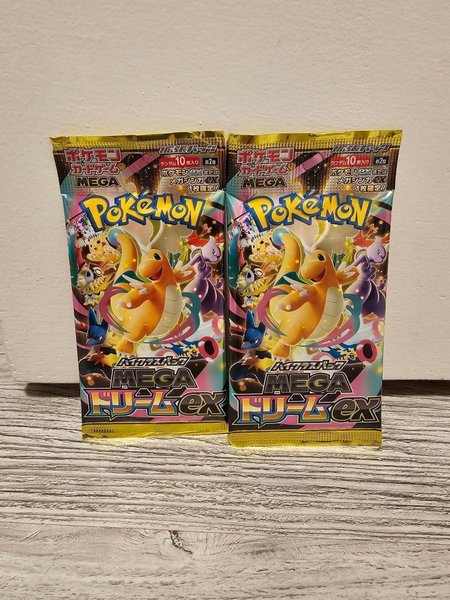 2 nya oöppnade Japanska Mega Dream EX booster packs. Varje paket innehåller 10 kort med chans till god packs!