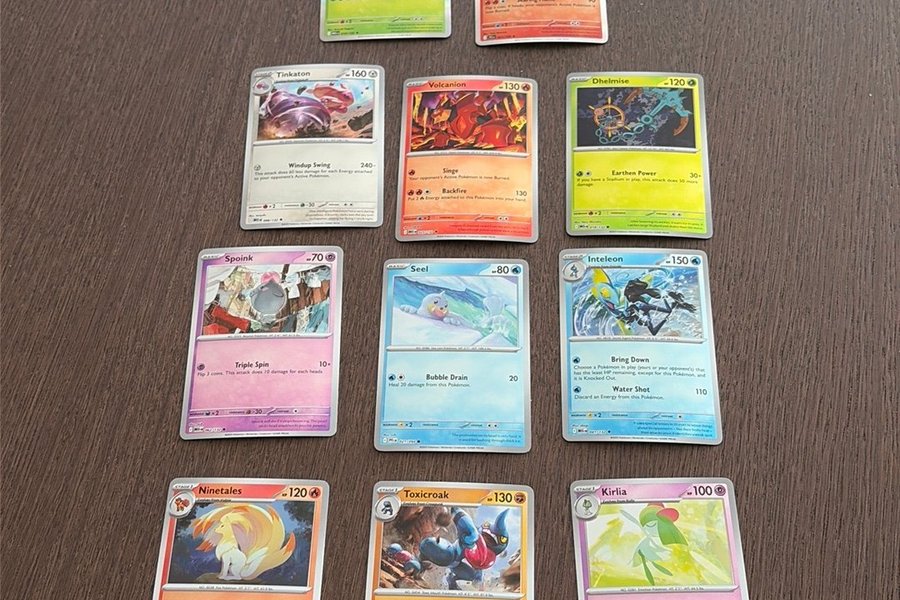 Detta set innehåller Pokemonkort med karaktärerna Meganium, Magmortar, Tinkaton, Volcanion, Dhelmise, Spoink, Seel, Inteleon, Ninetales, Toxicroak och Kirlia.