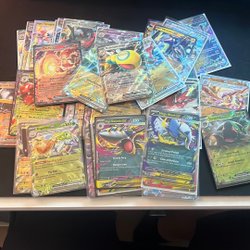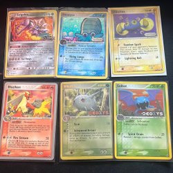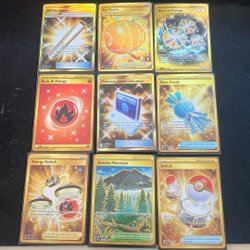Sælger en samling Pokemon kort. Inkluderer kort som Professor's Research, Glass Trumpet, Thunder Mountain, Counter Gain, Ultra Ball, Cyllene og Explorer's Guidance.