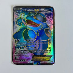 Pokemonkort M Charizard-EX med 230 HP. Kortet har attacken ”Wild Blaze” som ger 300 skada och kräver att du slänger de 5 översta korten från din lek. Svaghet x2, resistens saknas.