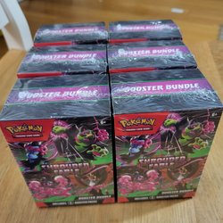 Pokémon TCG Scarlet & Violet—Shrouded Fable Booster Bundle innehåller sex booster packs. Varje booster pack innehåller 10 kort och 1 Basic Energy. Utöka din samling med detta booster bundle.