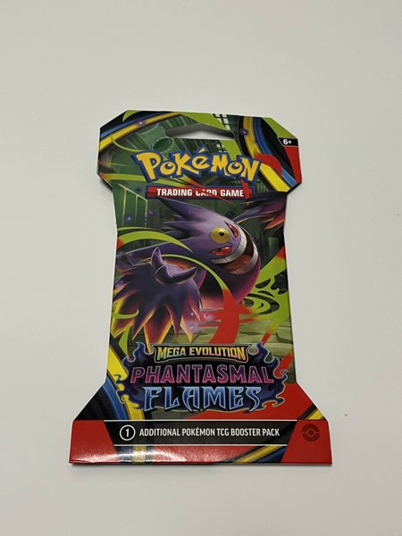 Ett oöppnat Pokémon TCG booster pack från serien Phantasmal Flames. Perfekt för samlare och spelare!