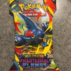 4st oöppnade Pokémon TCG Mega Evolution: Phantasmal Flames blister pack. Perfekt för samlare och spelare. 1 pack Innehåller 10 slumpmässiga kort, 1 energi kort och 1 online kod.