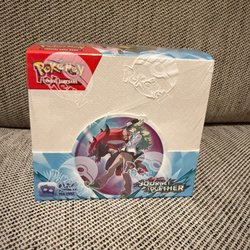 Sælger en forseglet booster box (lille hul i folie) fra Pokémon TCG serien Scarlet & Violet—Paldea Evolved. Perfekt til samlere og spillere!