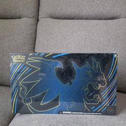 Pokémon TCG Mega Charizard-EX Ultra-Premium Collection. Innehåller bland annat en metallisk Mega Charizard X-kort, en spelmatta med Mega Charizard X och 8 booster packs.
