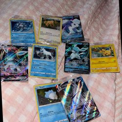 Säljer en samling Pokémonkort. Inkluderar kort som Meloetta, Serperior, Bouffalant, Carracosta, Trubbish, Hydreigon, Gengar, Toedscool, Teal Mask Ogerpon, Pikachu ex, Panpour masterball, Genesect ex, Munna, n’s Reshiram, Lillipup masterball, dewott masterball och Excadrill.