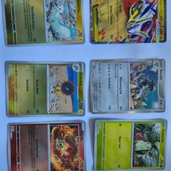 • Blandad samling med både vanliga Pokémonkort och några träningskort
