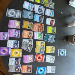 6 förpackade packet med 50-70 kort i varje hälften engelska hälften japanska perfekt present eller ge till barn alla kort äkta är även rev holo och holo i packen korten är från flera olika eror.