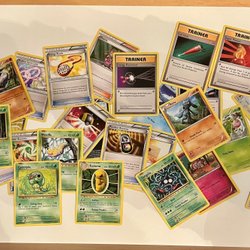 Stor samling av Pokémonkort. Innehåller blandade kort från olika serier, inklusive sällsynta och eftertraktade kort