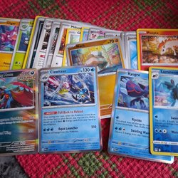 Samling av runt 350 Pokemonkort från olika sets. Blandning av Phantasmal, Astral Radiance, Fusion Strike, Destined Rivals, Mega Evolution, White Flare och Prismatic. Innehåller allt från holos, reverse holos, pokeballs holos och EX. Skickas i en phntasmal flames ETB