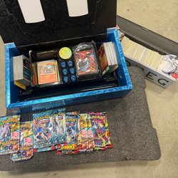 1 x låda full med kort lagt liknande innehåll brevid lådan