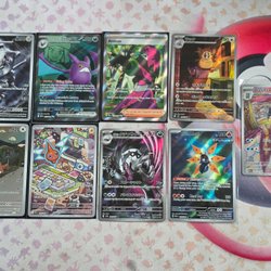 9 stycken Pokémon kort. Fint skick, endast uttagna ur sina pack. Det var dubbletter mot vad som redan vi hade.