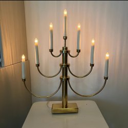Klassisk adventsljusstake i mässing med trä fot, med sju ljus. Perfekt för att skapa en stämningsfull atmosfär under advent och jul.