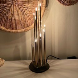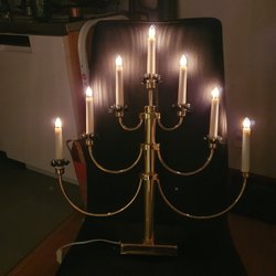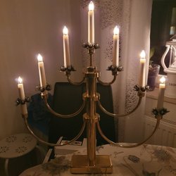 En dekorativ ljusstake från Gnosjö Konstsmide. Den har en unik design med flera ljuskällor i olika höjder. Perfekt för att skapa en mysig och stämningsfull atmosfär i hemmet.12 st. ljuslampor . Fungerade. Vintage.