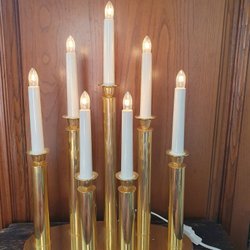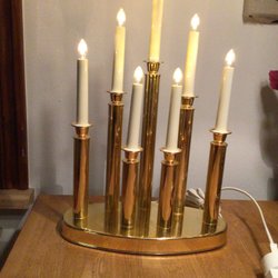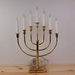 Klassisk adventsljusstake i mässing. Denna ljusstake har sju ljus och sladd med strömbrytare. Längd 38 cm, höjd 42,5 cm