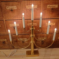 Klassisk adventsljusstake i mässingsfärg med sju ljus. Perfekt för att skapa julstämning i hemmet.