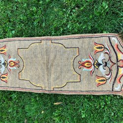 Brun gedigen trä ljusstake retro vintage stil troligen från 1960- talet eller 1970-talet. Nästan som målning från Dalarna eller Hälsingland. Troligen handgjord och målad. Den är gammal och har spår av användning (färgsläpp och små sprickor/ skador) alltså patina, se bilder noga för att bedöma skick.