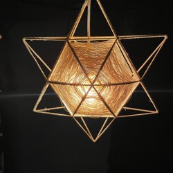 Adventsljusstake i koppar med plats för fyra ljus. Mönster av cirklar på sidan och bågformade handtag.