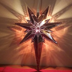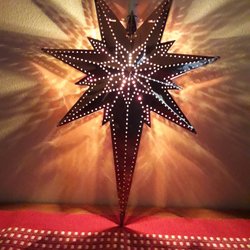 Fin Svart Adventsstjärna med en ljusslinga på insidan. Mycket dekorativ. Mått udd till udd 56 cm.