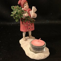 Pojke med julgran i porslin. Ljuslykta