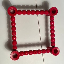 Charmig ljusstake i rött trä med blommönster. Ljusstaken har plats för tre ljus och är delbar.