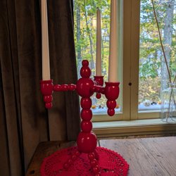 Gröna äldre ljusstakar i grön plåt.Lite nötta och slitna i färgen,men hela.