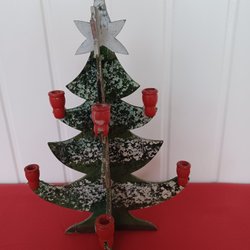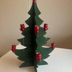 En charmig retro julgransljusstake i trä. Denna ljusstake skapar en mysig julstämning i hemmet. Perfekt för att sprida ljus och glädje under julhelgen.