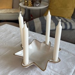 Två ljusstakar i form av julgranar. Från Lagerhaus. Höjd ca 12,5 cm. Finns två till i en annan annons om någon vill ha en ovanlig adventsljusstake.