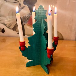 Ljuslykta/ Tomtefar och tomtemor vid en stubbe. Stubben är en hållare för värmeljus.