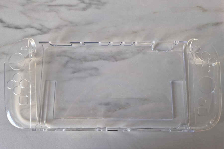 Ett skal för Nintendo Switch 2. Uppdelat för kontrollerna och enheten. Mjukare material för handkontrollerna och hårdare plast för själva enheten.