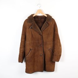 Brun jacka med detaljer som dragkedjor och bälte. Jackan har en krage i teddy material. Storlek S