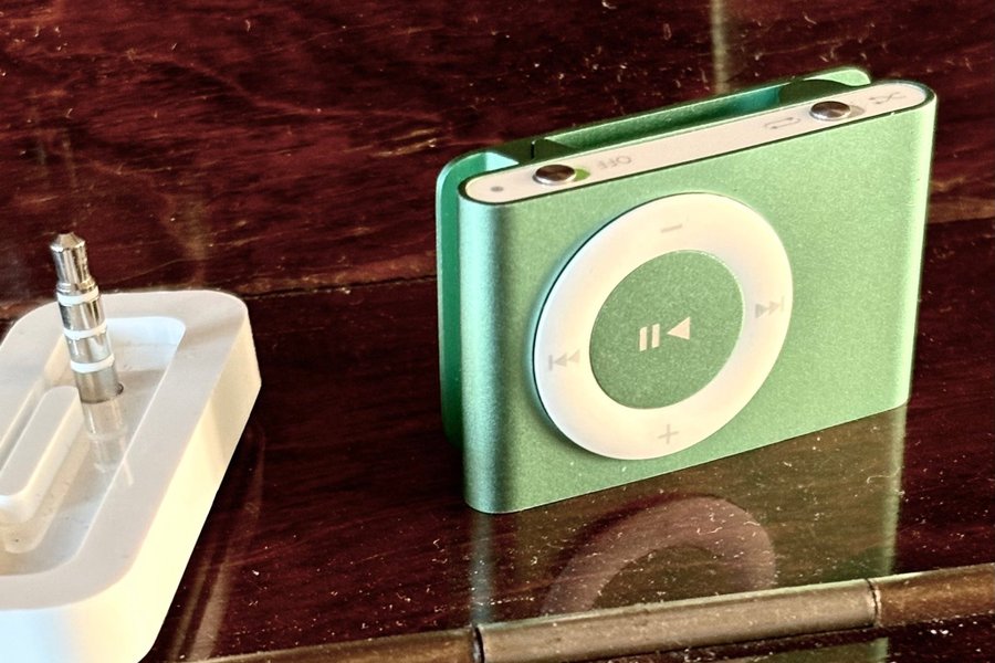 Apple iPod Shuffle 4:e generationen i grön färg. Kompakt musikspelare med klassisk design.