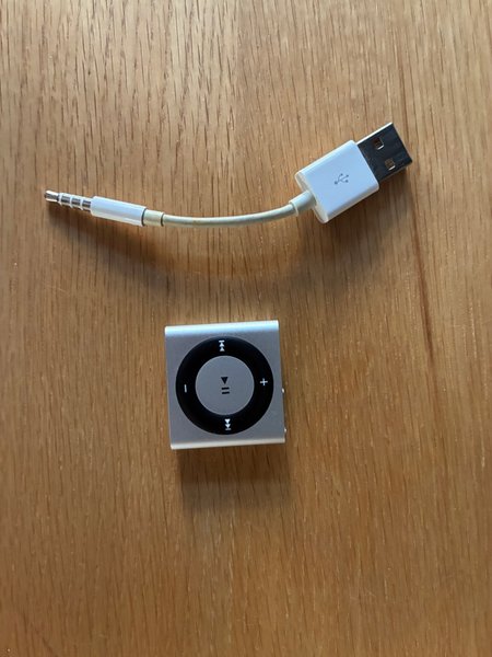 iPod Shuffle med USB-kabel för laddning och synkronisering. 4th generationen