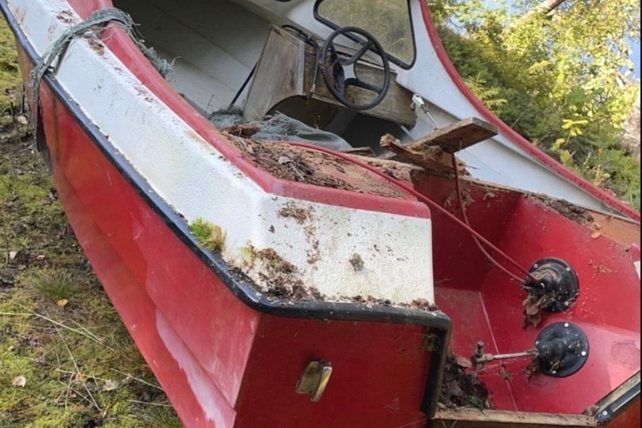 Är en spricka i skrovet längst bak som behöver plastas ihop lite och sen lite kärlek med ny färg om man är kräsen med det. Efter det har du en trevlig båt för fina sommardagar eller för fisketuren.