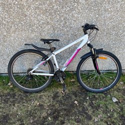 Fuji cykel med 13-tums ram och 27.5-tums hjul. Utrustad med Shimano-växlar.