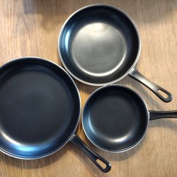 Set av 3 stekpannor.