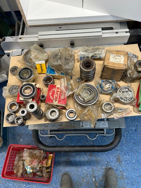 Ett parti med olika kullager och lager, inklusive märken som FAG och NACHI. Vissa lager är i originalförpackning.