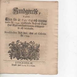 En historisk skrift från 1767, "Kungl. Maj:ts och Riksens Commerce Collegii Underrättelse", angående förmåner för klädes-, kamulls-, bomulls- och camelgarns-spinnerierne i Riket. Utgiven i Stockholm den 24 Martii 1767. Inget 12 SID