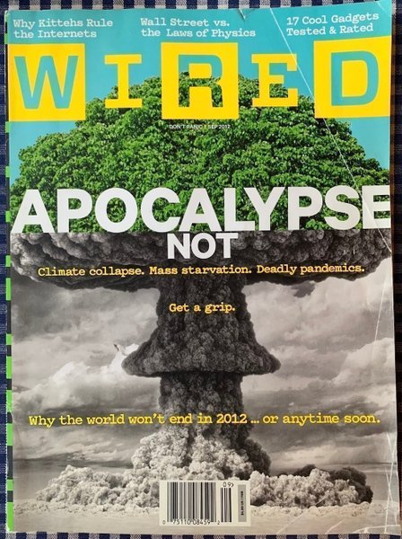 Tidningen Wired från september 2012 med omslagstemat ”Apocalypse not - climate collapse, mass starvataion, deadly pandemics”. Innehåller artiklar om teknik, vetenskap och kultur t ex ”Why kittehs rule the Internets” och ”Wall street vs. the laws of physics”.
