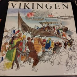 En bok om vikingar. Omslagspappret trasigt, men boken i mycket bra skick.