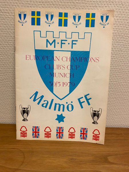 Programblad för Malmö FF. Europeiska mästare klubblagscup, Munchen 30/5 1979.