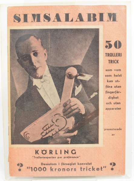 50 trolleri trick som vem som helst kan utföra utan fingerfärdighet och utan apparater. Dessutom förklaring till ""1000 kronors tricket"""".1943. 32s. Illustrerad, svartvit. Häftad. Fuktskadad.